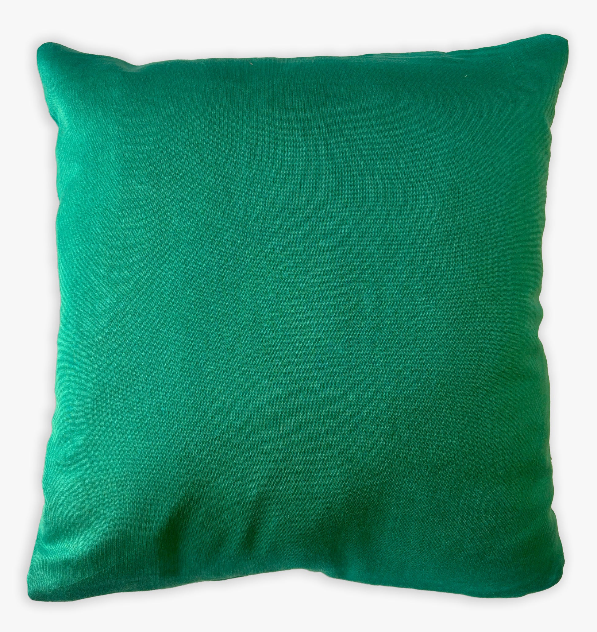 A beautiful canvas in emerald green, adorned with intricate floral embroidery and delicate sequins that shimmer with every glance. The rich hue and elegant detailing make it a timeless accent, effortlessly elevating the charm of your living space.