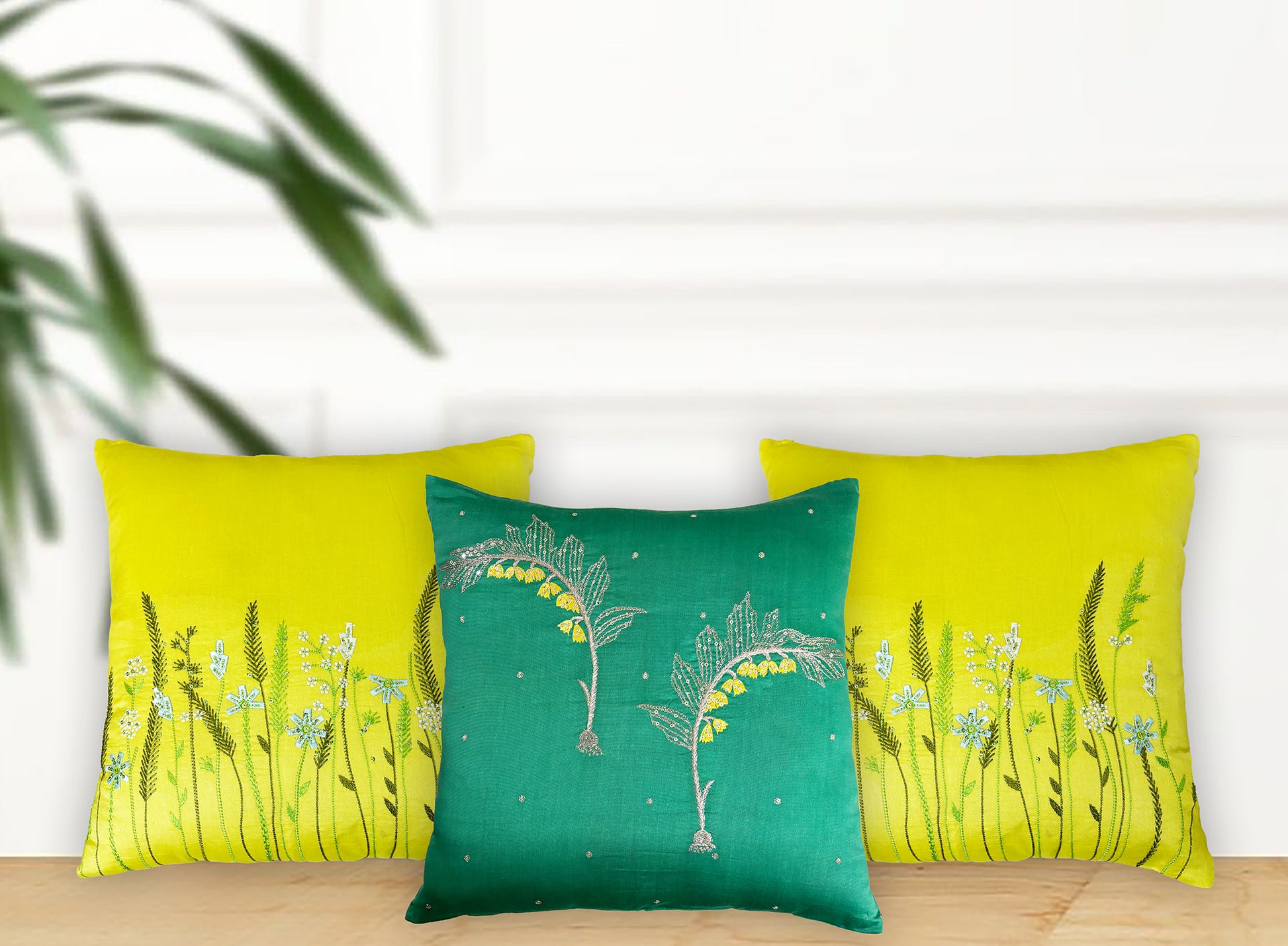 Contains: 2Pcs Yellow Cushion Covers, 1Pc Green Cushion Cover